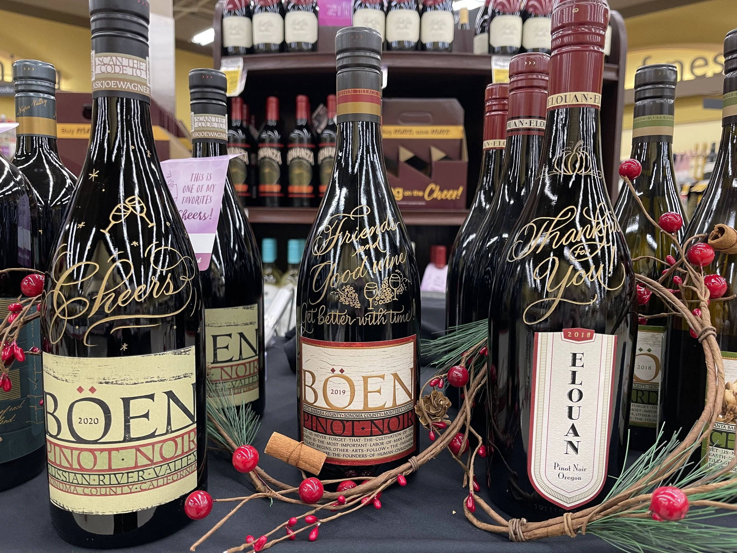 Visit me for complimentary engraving on your purchase of Quilt, Belle Glos, Böen & Elouan fine wines. Done while you wait, personalize your wine with engraving as a great gift for any special occasion!